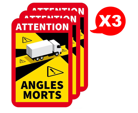 Lot de 3 autocollants angles morts pour poids lourds 17x25cm